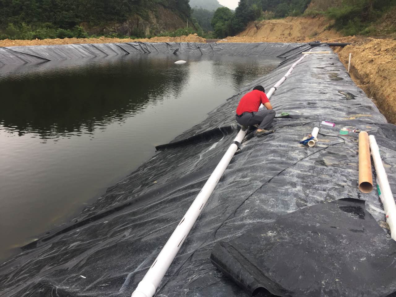 沼氣池黑膜的施工方法: